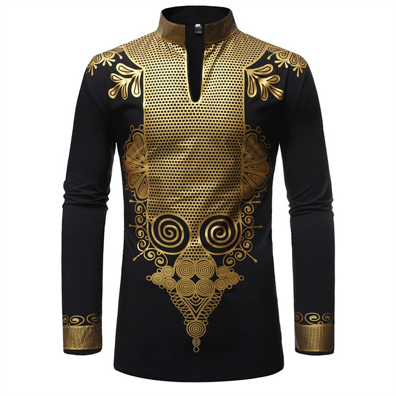 Men's Shirt Casual Shirt Tuxedo Shirts Bronzing Stage Party / Cocktail Black White Red Navy Blue Long Sleeve Stand Collar Spring Fall Clothing Apparel
