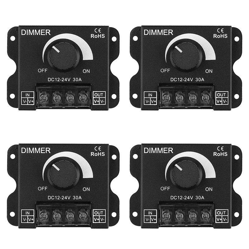 LED Light Strip Dimmer DC12V-24V 30A PWM Dimming Controller for Dimmer Knob Adjust Brightness ON/Off Switch with Aluminum Housing (Aluminum Dimmer)
