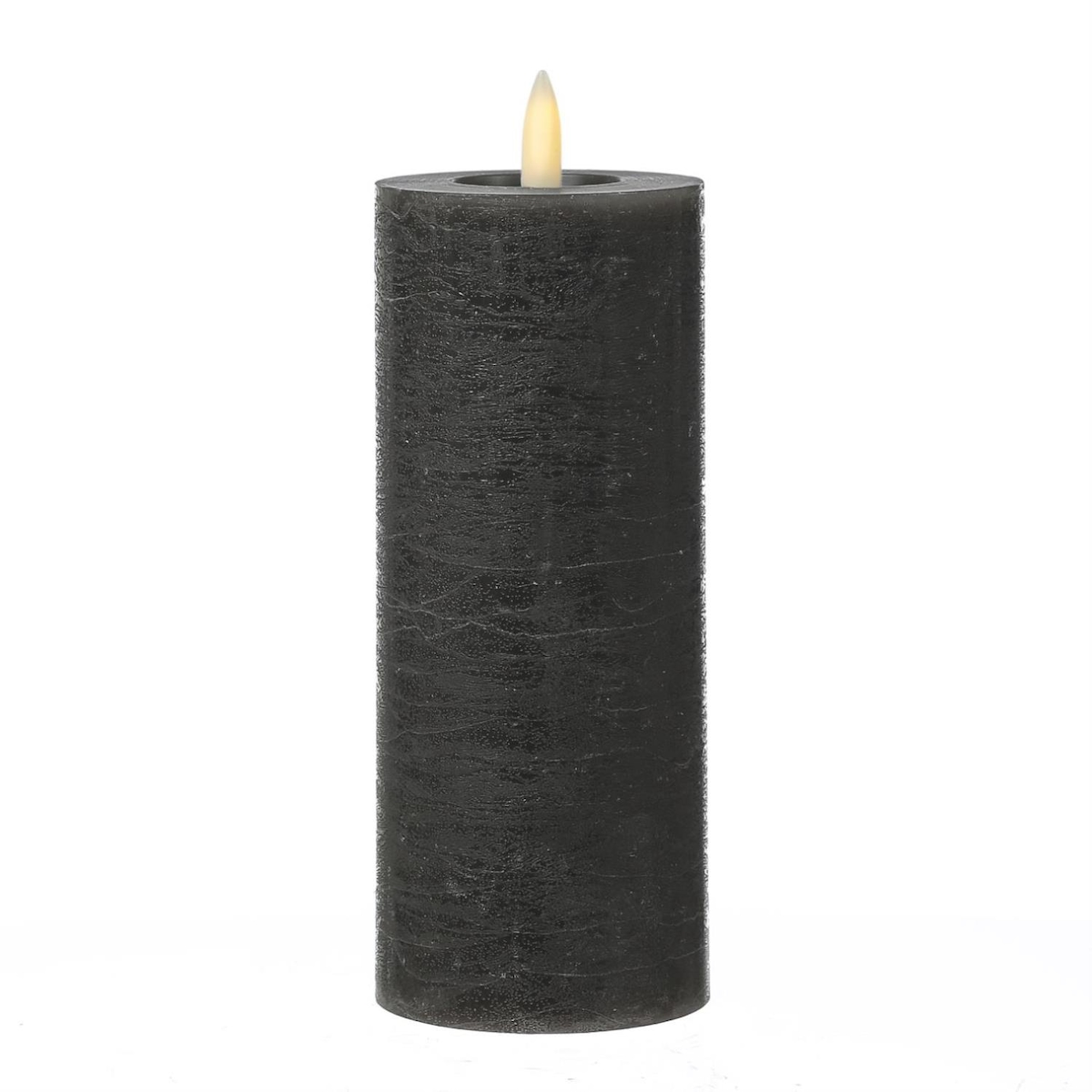 LED Kerze LINA Rustik Optik Echtwachs flackernd Timer H: 19cm grau