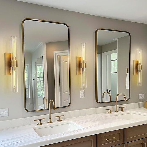 lampade da toeletta per il bagno, applique da parete in tubo di vetro, base in ottone spazzolato, luci da parete per il bagno, luci da parete per il comodino della camera da letto, lampade da parete