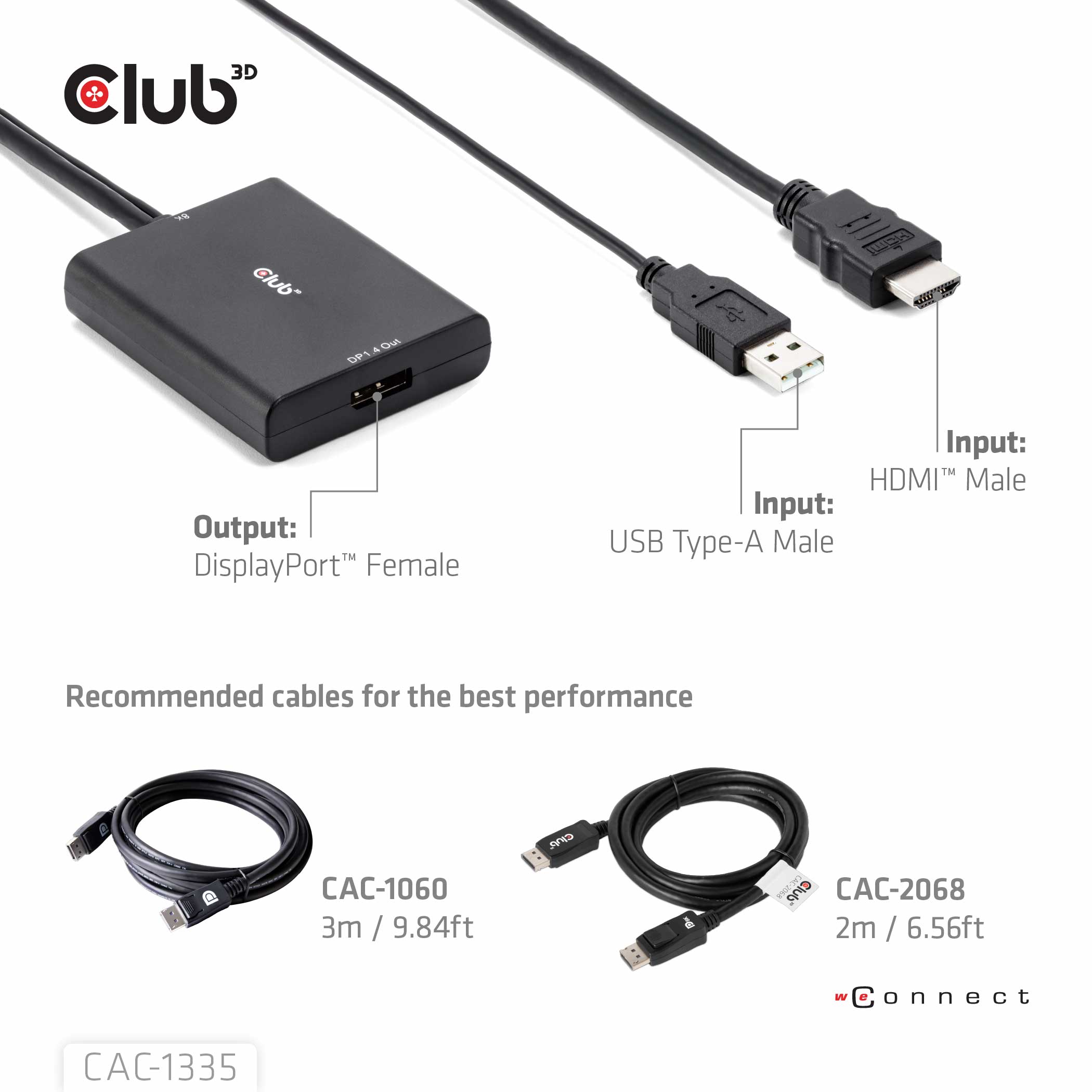 Club 3D CAC-1335 HDMI til DisplayPort aktiv Adapter med USB kabel Sort
