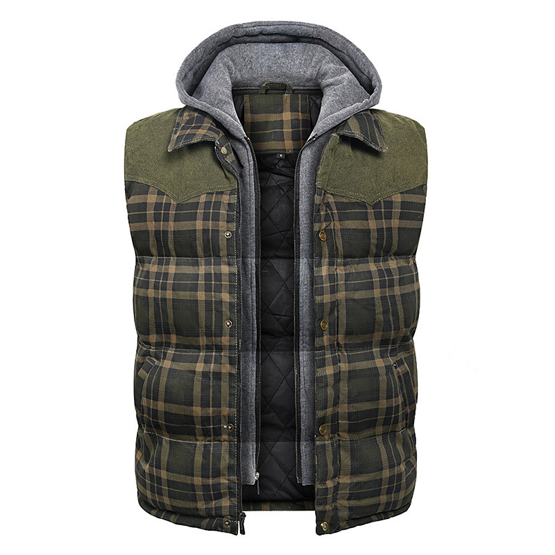Men's Puffer Vest Vest Gilet Vacation Daily Date Fashion Casual Fall Winter Pocket Polyester Warm Comfortable Plaid Zipper Hooded Regular Fit Red Green Army Green Vest