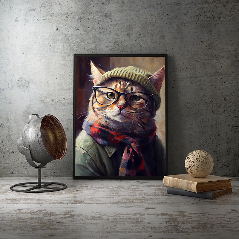 1pc Punk Rock Cat Portrait Oil Painting Wall Art Original Artwork Print Felino Anmail Mpressionist Home Decor Animal House Pet Decor