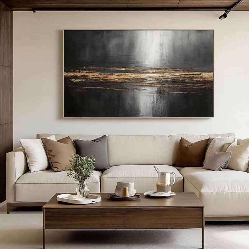 Oil painting Chrismas gift handmade Black And Gold Abstract painting hand painted Minimalist Wall Art Modern Abstract Wall Decor Chrismas gift Minimalist Artwork Living Room Decor Bedroom Wall Art