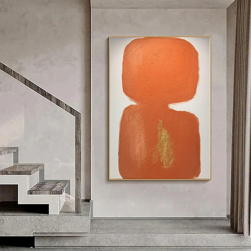 Hand Painted Warm Orange Painting Architectural Abstract Wall Art Wabi Sabi Wall Art Minimalist Orange Painting Home Decor