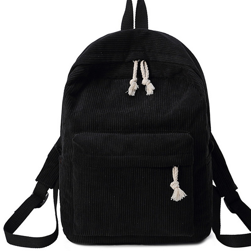 Women's Corduroy Backpack with Tassel Drawstring and Front Pocket – Soft Lightweight Casual Bag for School, Travel, or Daily Use