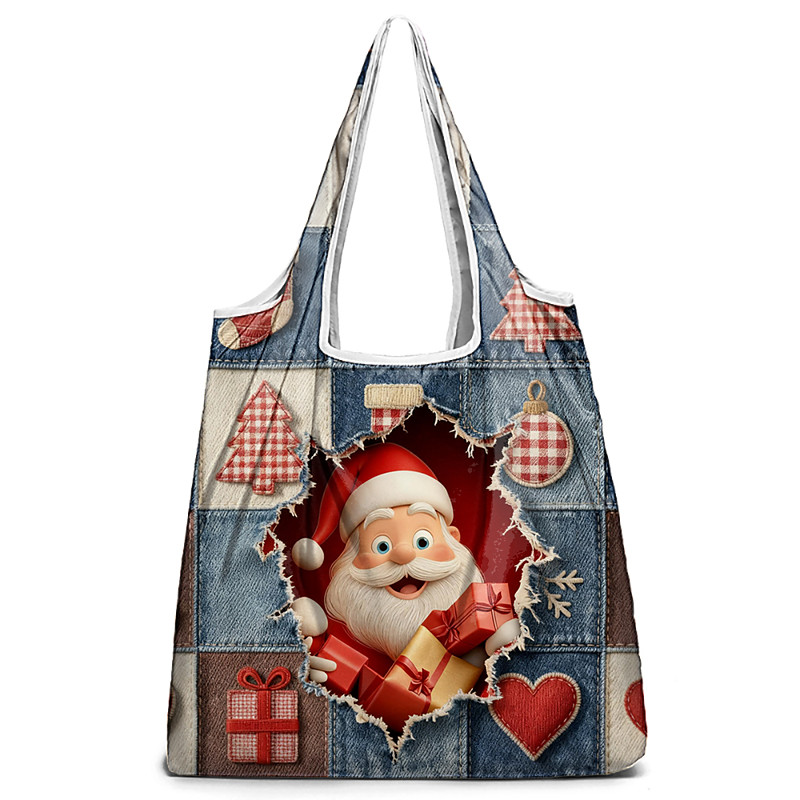 Women's Christmas Foldable Shopping Bag - Multiple Santa Designs, Polyester Material, Durable and Compact, Perfect for Holiday Shopping and Gifts
