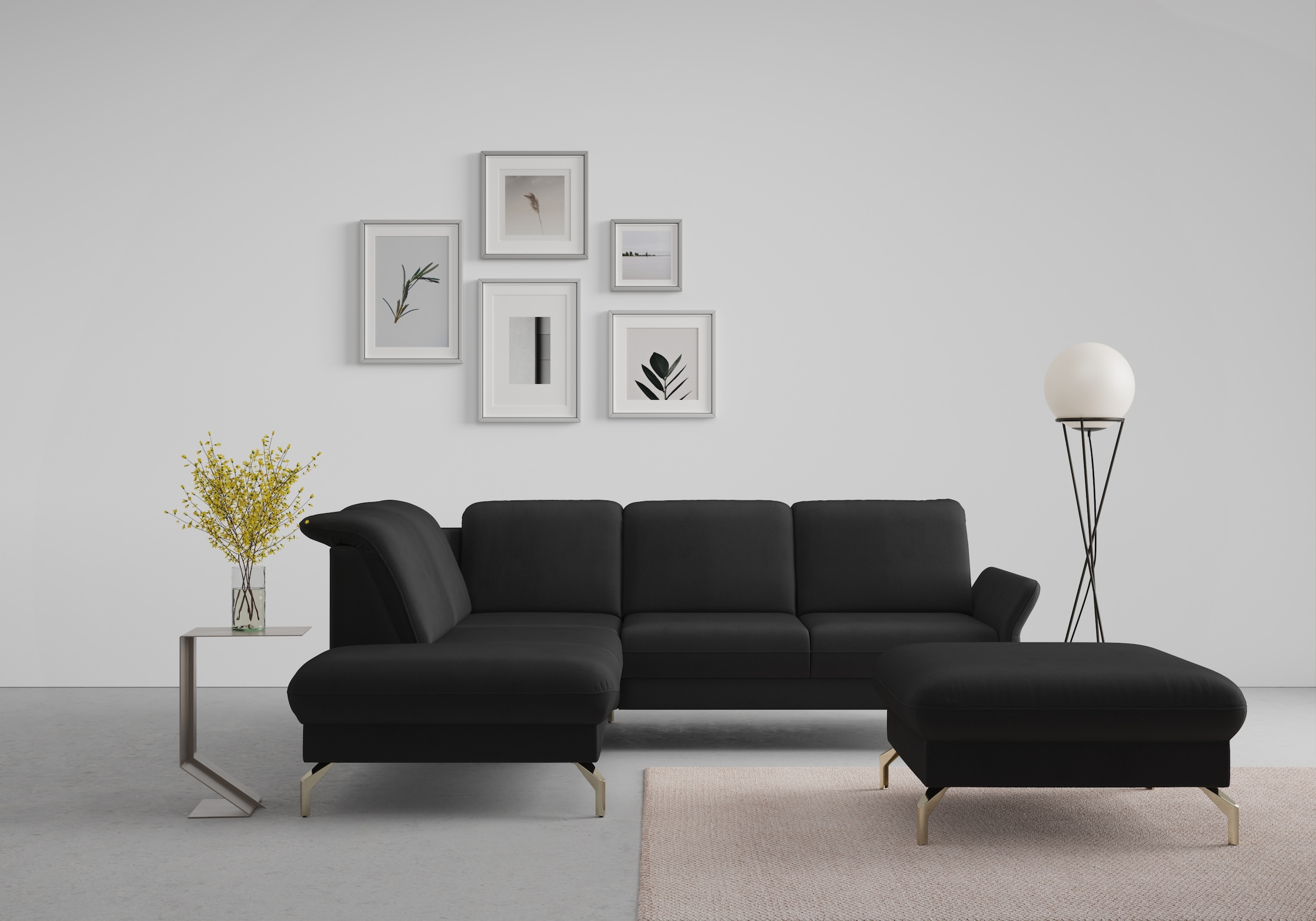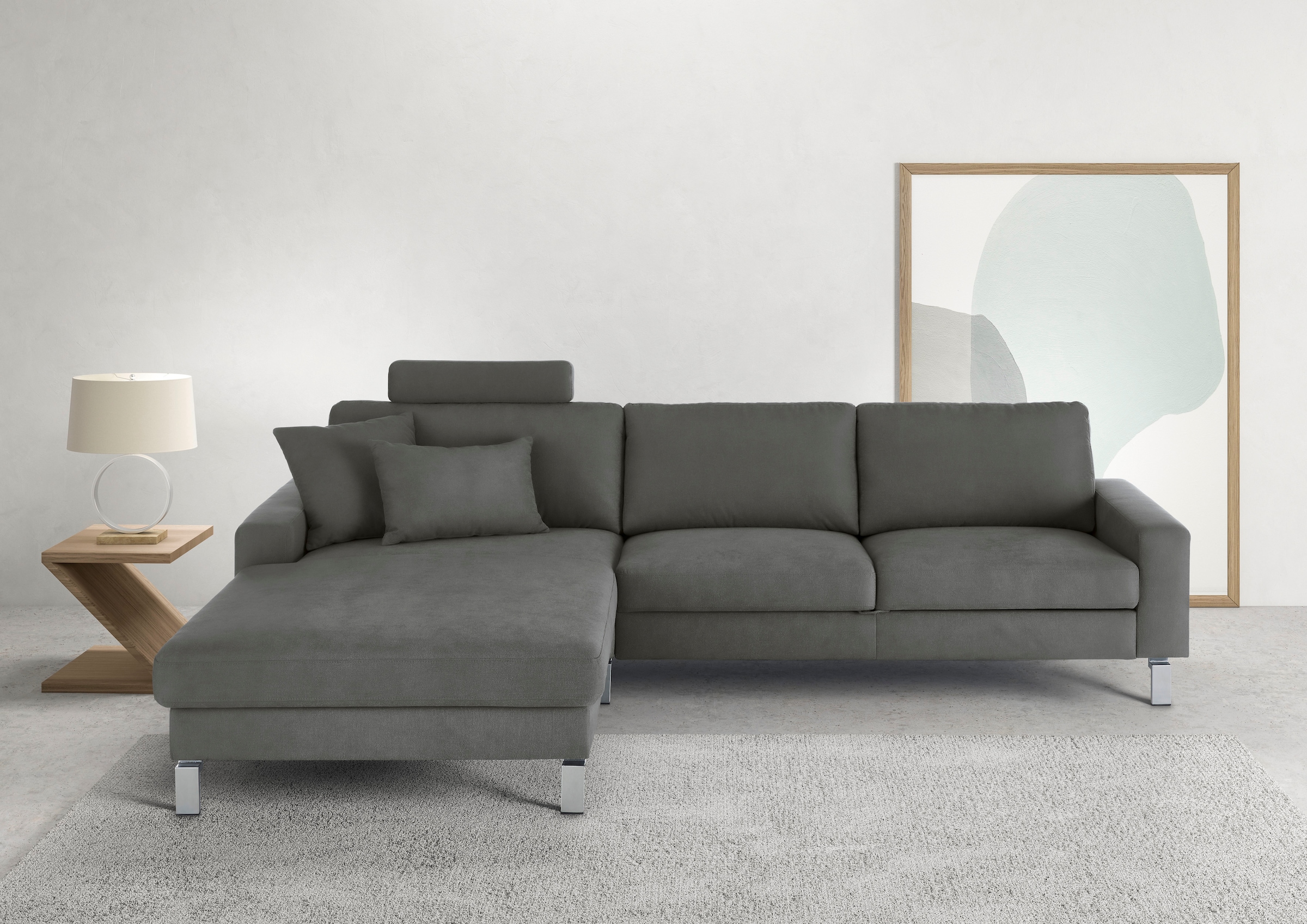 Ecksofa W.SCHILLIG "piedroo, Designsofa mit tollem Sitzkomfort, bequem, L-Form", grau (grau r66), B:343cm H:70cm T:193cm, Chenille-Flachgewebe R66 (85% Polyester, 15% Nylon), Sofas, Kopfteilverstellung, wahlweise mit Sitztiefenverstellung, Breite 343cm