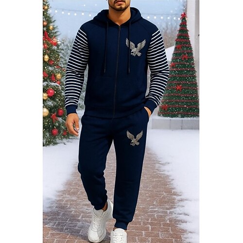 Per uomo Tuta da 2 pezzi Felpa con cappuccio Lounge Felpa con zip intera Cerniera completa con tasca Con Motivo Animale Completo Abbigliamento Primavera Nero Blu marino Viaggio Corsa Traspirante