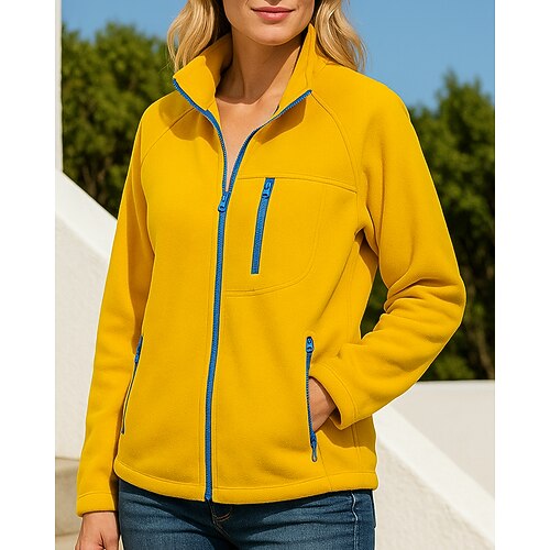 Per donna Cappotto invernale Giacca con cerniera completa Giacca in pile polare con tasche Manica Lunga Top Athleisure Tinta unita Antivento Caldo Escursionismo Viaggio Vacanze abbigliamento sportivo