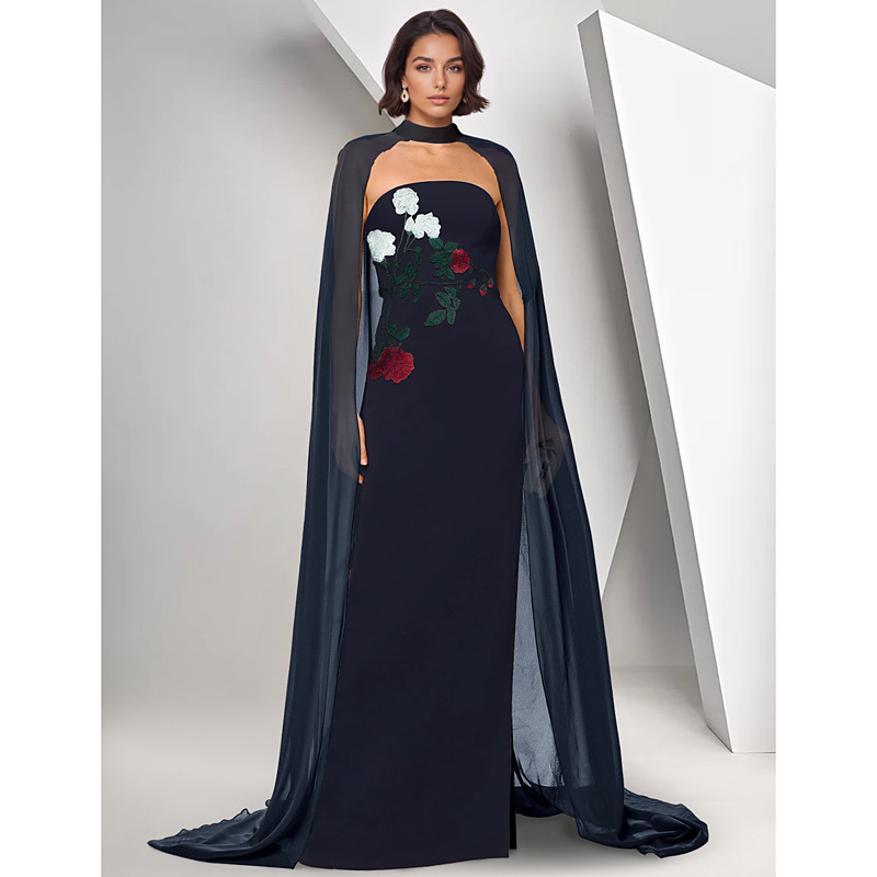 Sheath Column Floor Length Beaded Eembroidered Formal Dresses Mother of the Bride Dress Ball Gown with Cape Evening Gown Formal Dress Elegant Celebrity Style Sleeveless Strapless Garden Party Wedding