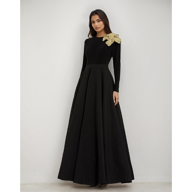 A-Line Floor Length Evening Gown Ball Gown Formal Dress Elegant Celebrity Style Long Sleeve Crew Neck Garden Party Wedding Velvet Stretch Crepe with Beading Pocket