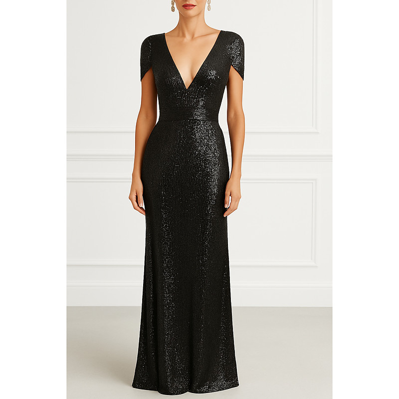 Sheath Column Floor Length Prom Dresses Evening Gown Ball Gown Formal Dress Elegant Color Block Glittering Short Sleeve V Neck Wedding Formal Champagne Mother Of the Bride Dress Stretch Satin Sequined