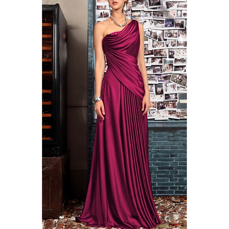 Ball Gown A-Line Floor Length Evening Gown Elegant Celebrity Style Red carpet Sleeveless One Shoulder Garden Party Wedding Satin with Pleats