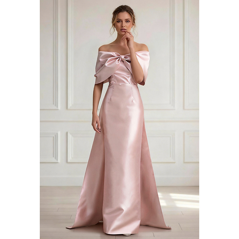Sheath Column Floor Length Satin Dress Formal Dresses Evening Gown Ball Gown with Overskirt Formal Dress Elegant Vintage Glittering Sleeveless Off Shoulder Wedding Formal Satin with Bow(s)