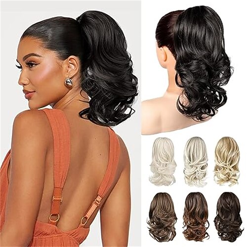 Extension per coda di cavallo - Extension per coda di cavallo con clip a artiglio da 14 - Extension per capelli sintetici morbidi e naturali, ondulati e a strati per donna - platino