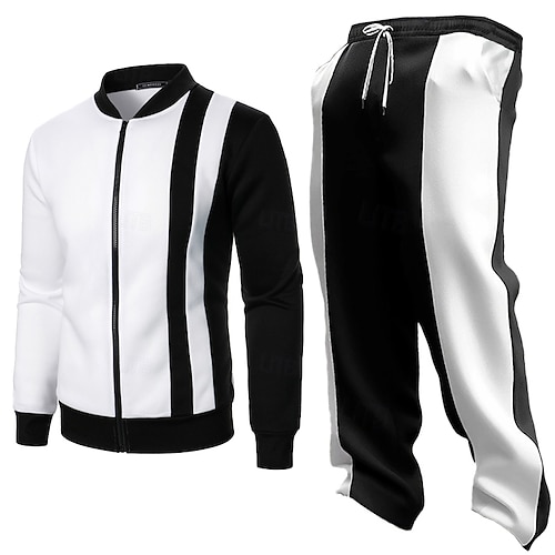 Per uomo Set coordinati Nero Felpa Pullover Pantaloni da tuta Pantaloni da Tuta a Gamba Larga Pantaloni Set Manica Lunga Colletto Mao All'aperto Vacanza Blocco di colori 2 Pezzi Cerniera completa