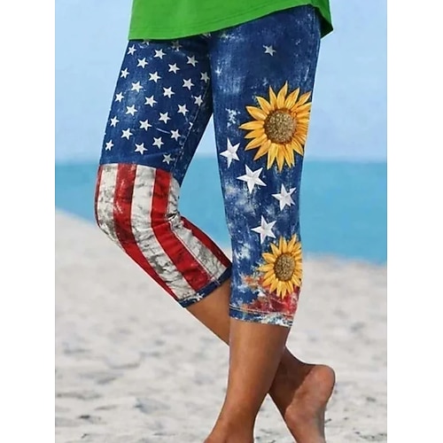 pantaloni capri da donna per il giorno dell'indipendenza americana, leggings, eleganti, elasticizzati, a vita media, lunghi fino al polpaccio, con stampa grafica della bandiera nazionale, comodi,