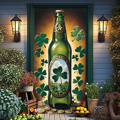 Festa di San Patrizio Poster Copertura della porta Banner per esterni Cappello verde Trifoglio Carino 3D Da serata Dormitorio Stanza per adolescenti Dormitorio universitario Ragazzi Man Cave Frat
