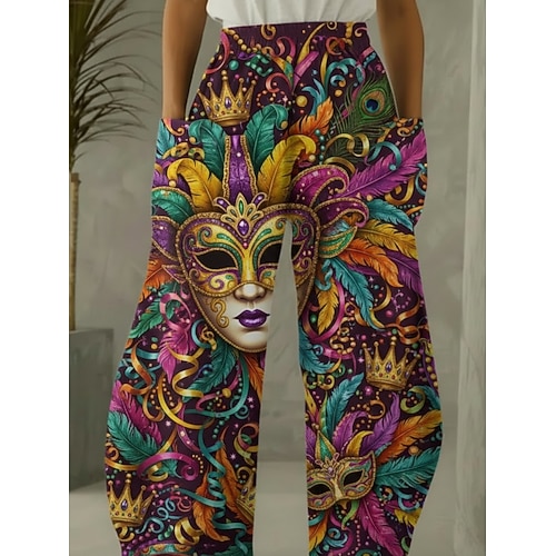 Karnevalshose für Damen, weit geschnitten, im Vintage- und Ethno-Stil, lange Hose mit hohem Bund, Grafikprint, Kordelzug, Tasche, elastischem Bund, bequem, atmungsaktiv, dehnbar, lässig, für jeden Tag