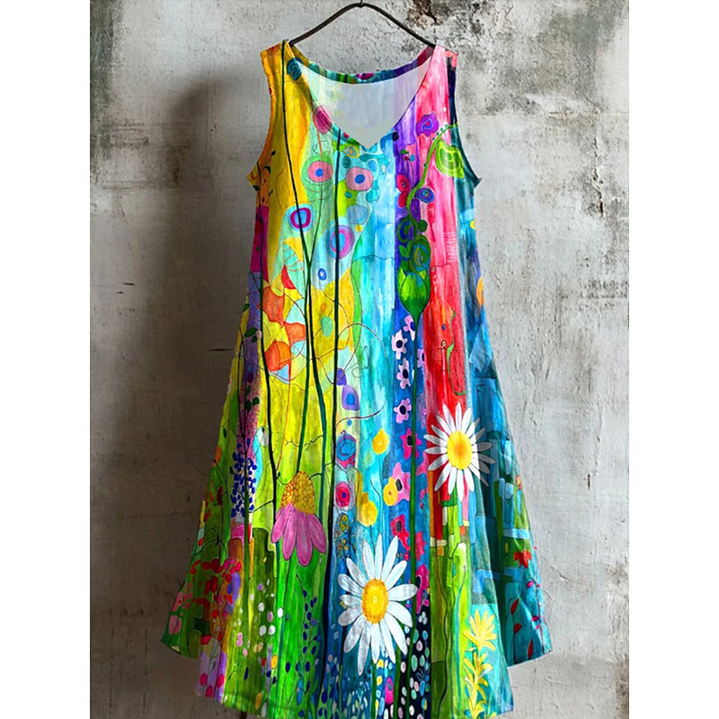 Women's Mini Dress Sundress A Line Dress Summer Dress Vacation Casual Wedding Home Party Regular Fit Floral Graphic Leaf Sleeveless U Neck Yellow Red Blue Purple Summer Spring