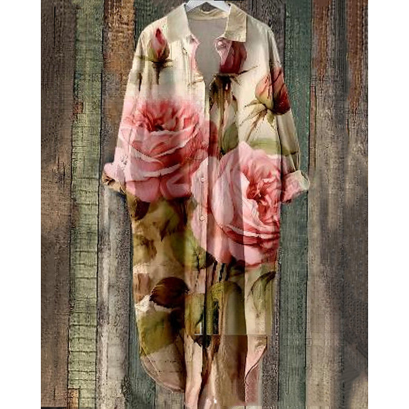 Women's Midi Dress Shirt Dress Casual Dress Fashion Modern Daily Beach Weekend Regular Fit Flower Long Sleeve Shirt Collar White Pink Red Blue Spring Fall