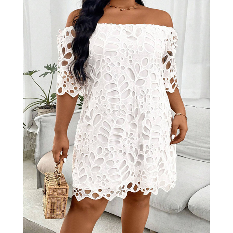 Women's Mini Dress White Dress Fashion Modern Office Going out Regular Fit Plain Half Sleeve Off Shoulder White Spring Fall