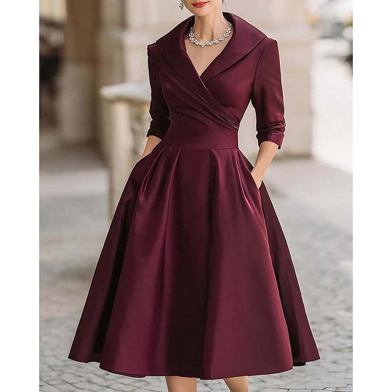 Women's Midi Dress Elegant Dress Elegant Fashion Modern Office Going out Regular Fit Plain Long Sleeve Shirt Collar Black White Wine Purple Spring Fall Winter