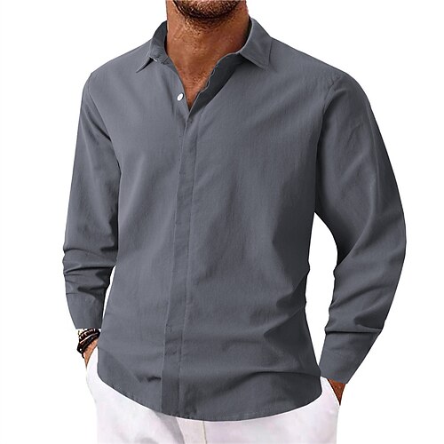 Per uomo Camicia Camicia Estiva Camicia casual Camicia da Spiaggia Camicia con Bottoni Nero Bianco Verde chiaro Beige Grigio Manica Lunga Tinta unica Bavero Vacanza Casuale Abbigliamento Moda Casual