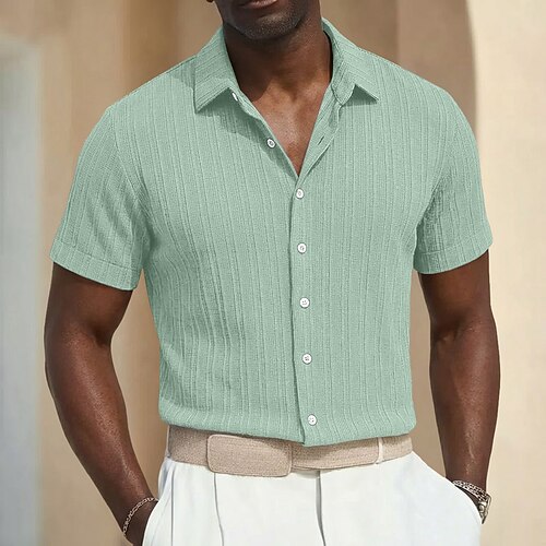 Per uomo Camicia Camicia casual Camicia da Spiaggia Camicia con Bottoni Camicia Jacquard Blu Nero Bianco Rosa Blu marino Manica Corta Semplice Bavero Casuale Abbigliamento casual alla moda