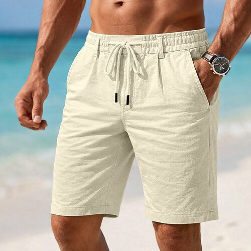 Per uomo Shorts Shorts di Lino Pantaloncini Estivi Shorts da Spiaggia Coulisse Tasca Elastico in vita Tinta unita Comodità Traspirante Corto Casuale Quotidiano Spiaggia Vacanza Moda Nero Bianco