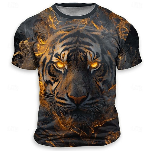 Per uomo Animale Tigre Divertente Maglietta Manica Corta maglietta Stampa 3D Girocollo Camicia Esagerato Designer Feste Ferie Nero 1 Nero 3 Nero 2 Estate Primavera Abbigliamento S M L XL XXL XXXL