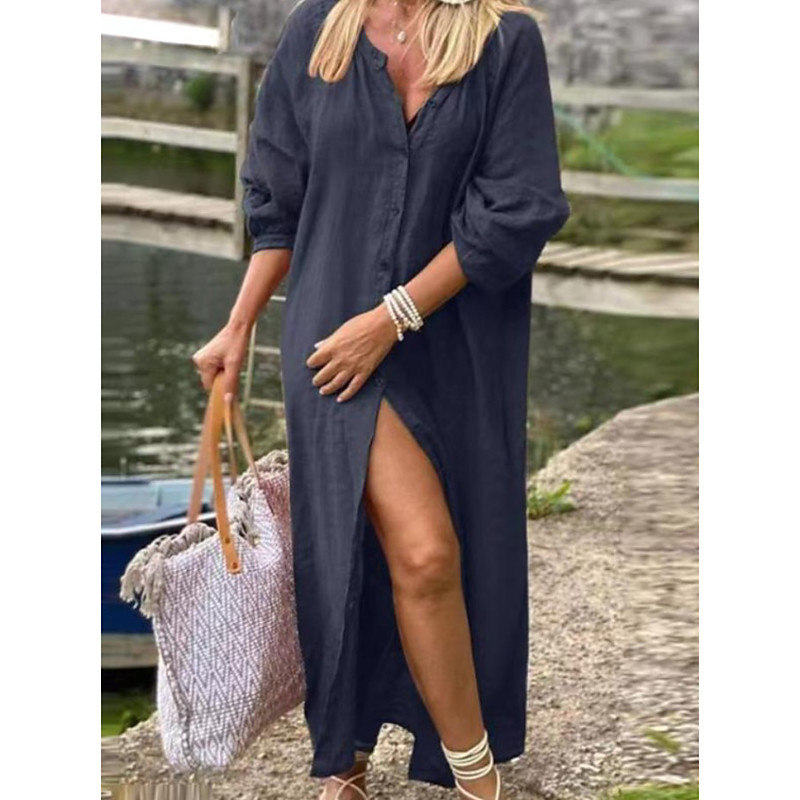 Women's Maxi Dress Sundress Casual Boho Daily Holiday Plain Long Sleeve Crew Neck Black Navy Blue Orange Green Summer