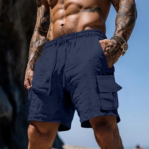Per uomo Shorts Shorts di Lino Pantaloncini Estivi Shorts da Spiaggia Coulisse Elastico in vita Multi-tasche Semplice Lunghezza al ginocchio All'aperto Spiaggia Hawaiano Casual Verde militare Nero