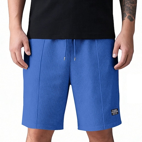 Per uomo Pantaloncini Waffle Shorts Shorts da Spiaggia Pantaloncini casual Tasca Elastico in vita Semplice Comodità Traspirante Lunghezza al ginocchio Casuale All'aperto Spiaggia Vacanza Moda Nero