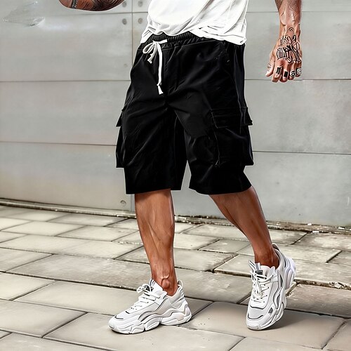 Per uomo Carico tattico Pantaloncini cargo Shorts Pantaloncini casual Tasca Elastico in vita Tinta unita Comodità Traspirante Lunghezza al ginocchio Casuale Quotidiano All'aperto Moda Streetwear Nero