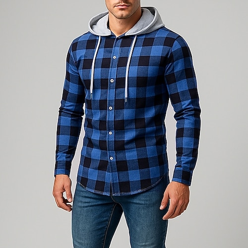 Per uomo Camicia Camicia casual Camicia da Spiaggia Blu Nero Giallo Rosso Verde Manica Lunga Plaid Con Cappuccio Casuale Quotidiano Coulisse Abbigliamento Moda Casual Confortevole