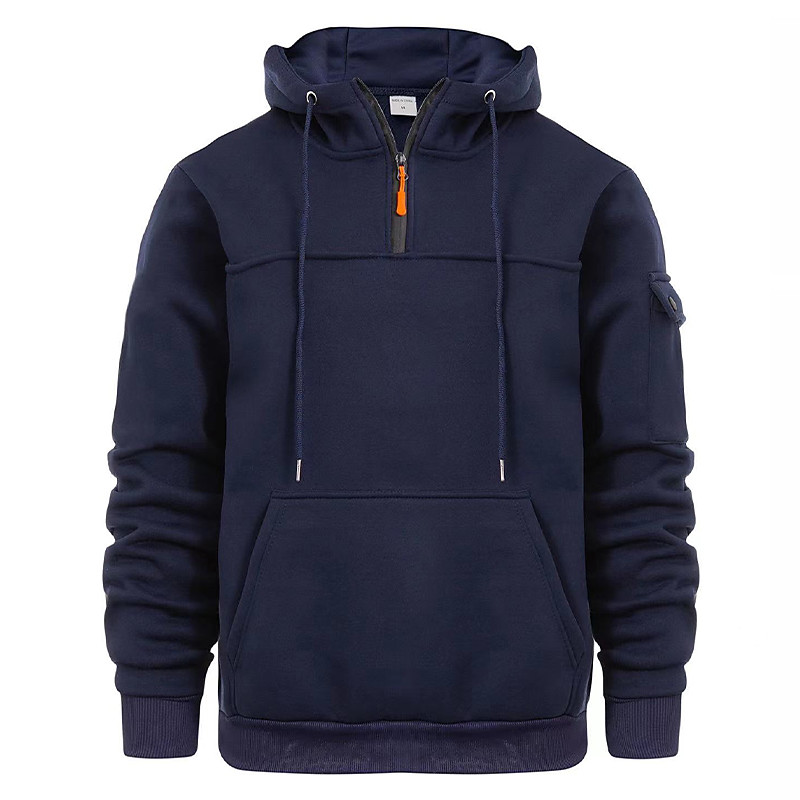 Men's Hoodie Fleece Hoodie Tactical Hoodie Black Navy Blue Khaki Light Grey Dark Gray Hooded Plain Pocket Quarter Zip Sports Outdoor Casual Daily Streetwear Cool Sportswear Fall Winter Clothing