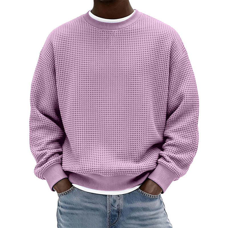 Men's Sweatshirt Waffle Sweatshirt Pullover Hoodie Sweatshirt Wine Red Black White Light Green Navy Blue Crew Neck Plain Textured Casual Daily Sports Outdoor Streetwear Cool Sportswear Spring