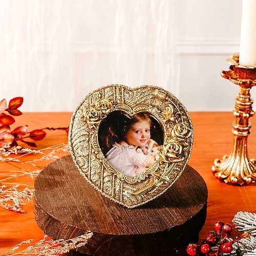 1 cornice per foto a forma di cuore classica europea con rosa, cornice per foto in resina tridimensionale con motivo a rosa, adatta per esporre foto di famiglia e come decorazione fotografica.