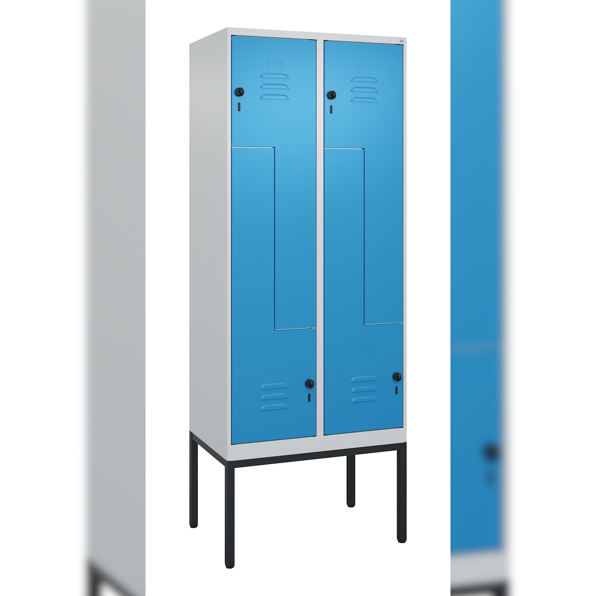 C+P Z-Spind Classic PLUS, Gestell, 4 Abteile, HxBxT 212x80x50cm, Sicherheitsdrehriegel, Hellgrau/Lichtblau von PROREGAL