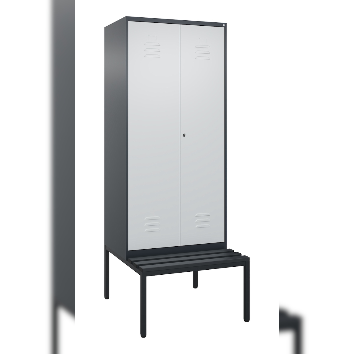 C+P Schwarz-Weiß-Spind Classic PLUS, Bank, 2 Abteile, 2120x800x815mm, 7035/5010