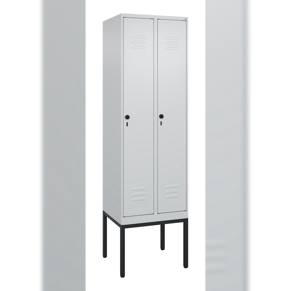 C+P Spind Classic PLUS, Gestell, 2 Abteile, HxBxT 212x60x50cm, Sicherheitsdrehriegel, Hellgrau/Hellgrau von PROREGAL