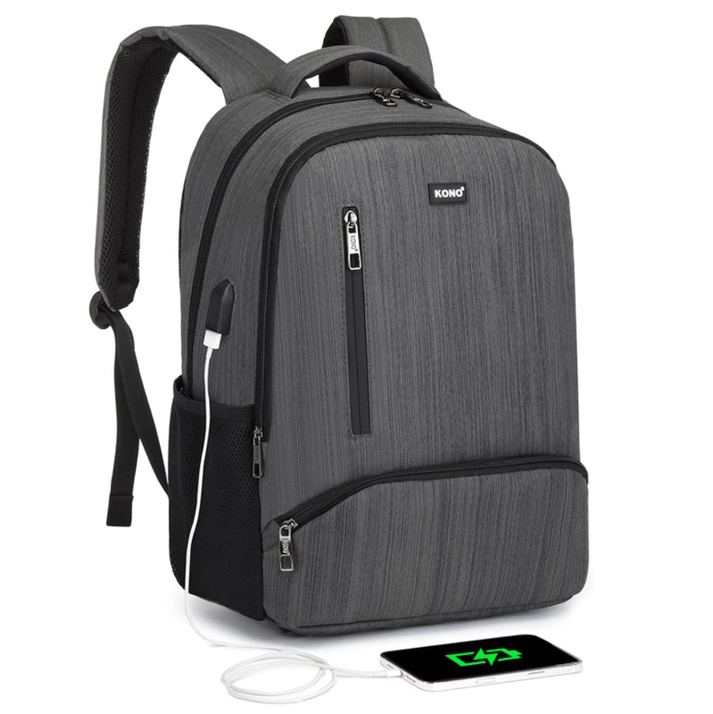 Kono Travel Laptop Backpack with USB Charging Port Water Resistant Work Business Computer Bag Schoolbag Rucksack for Women Men Casual Daypack Fits 15.6 Inch Laptop Grey
