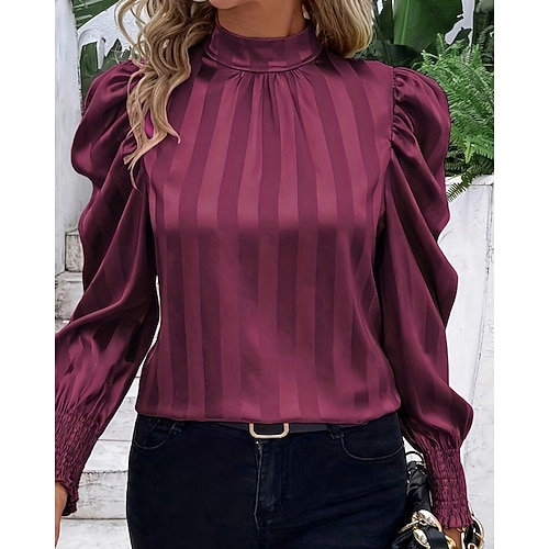 Per donna Camicia Blusa Semplice Elegante Manica Lunga Colletto a Camicia Top Regolari Ferie Uscire Arricciato Vino Autunno Inverno
