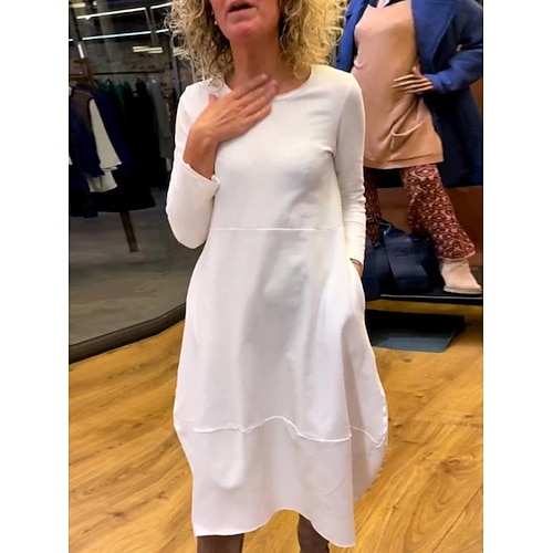 Per donna Abito Midi Vestito T-Shirt Casual Quotidiano Vestibilità regolare Semplice Manica Lunga Girocollo Nero Bianco Vino Marrone Primavera Autunno