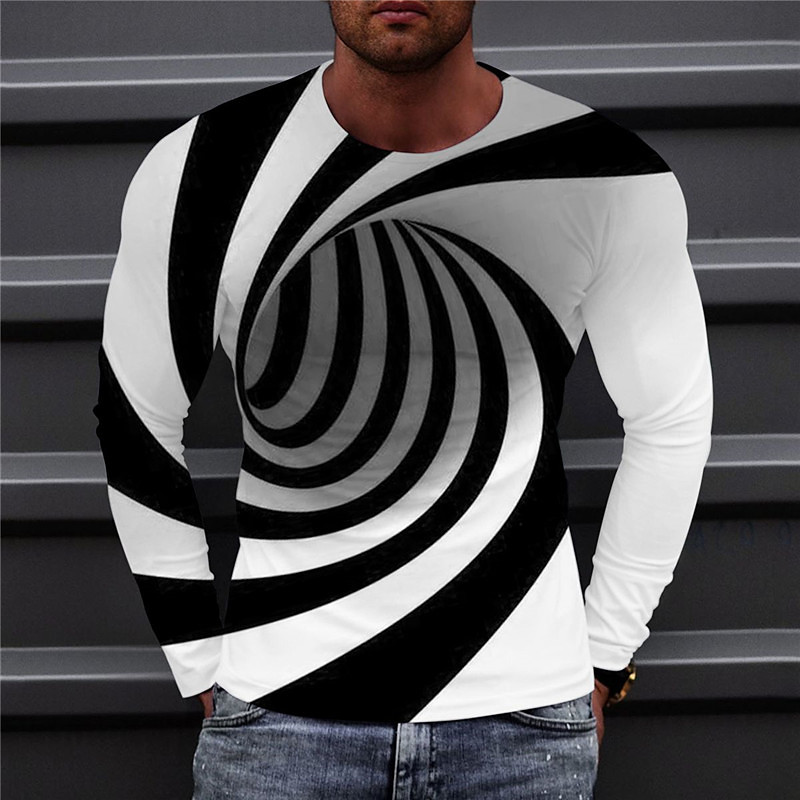 Men's Optical Illusion Graphic Prints T Shirt Long Sleeve T shirt 3D Print Crew Neck Shirt Sports Designer Basic Outdoor Street Daily A B C Spring Fall Clothing Apparel S M L XL XXL 3XL 4XL