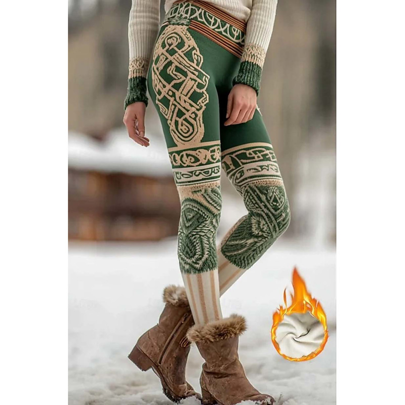 Women's Viking Boho Fleece Lined Leggings Leggings Vacation Vintage Ethnic Style Full Length High Waist Geometric Pattern 3D Print Thermal Warm Windproof Comfy Stretchy Home Daily Yellow Light Purple