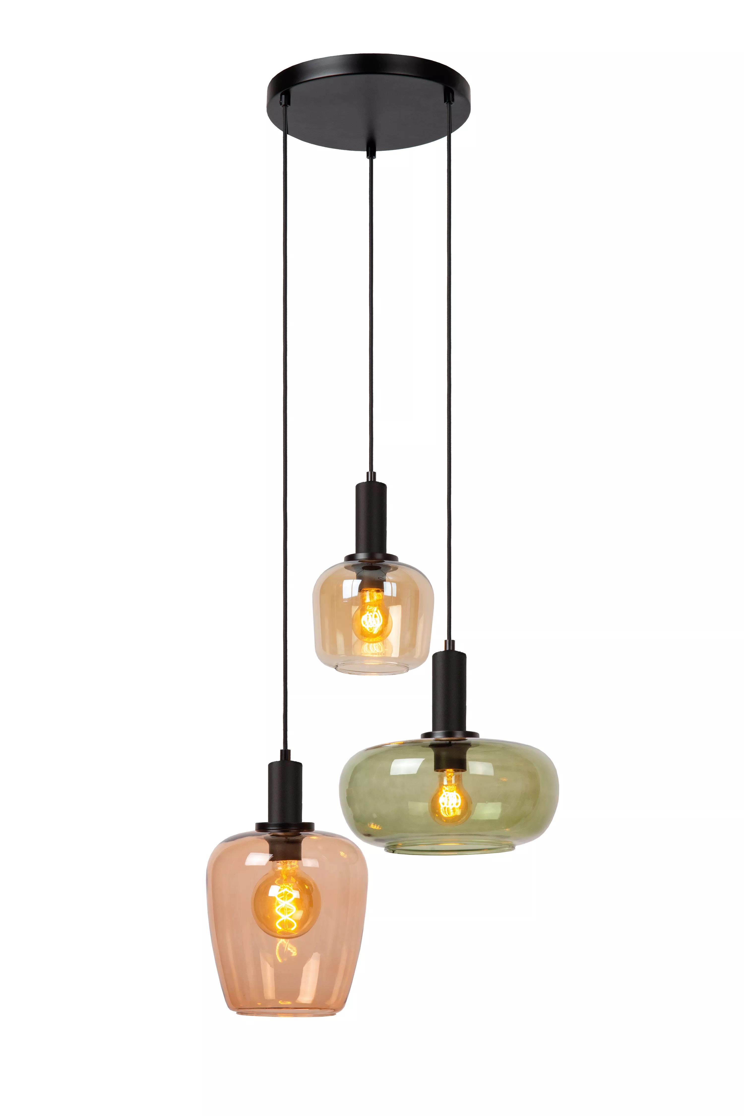 Lucide Ilona - lampe suspendue 3L - Ø 51 x 174 cm - noir et multicolore