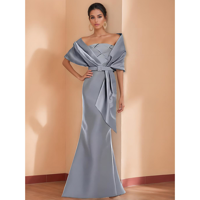 Mermaid Trumpet Floor Length Prom Dresses Evening Gown Ball Gown Formal Dress Elegant Silky Mother Of The Bride Short Sleeve Spaghetti Strap Wedding Formal Belt / Sash Satin with Ruffles Shawl